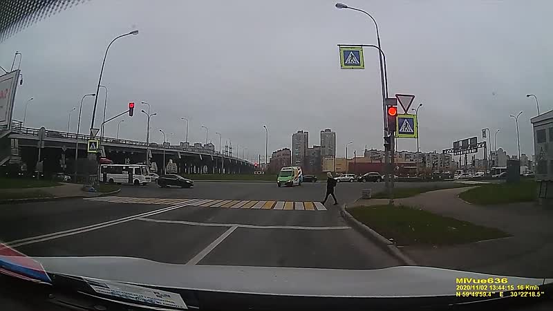 Russisch busje gaat op z'n kantje nadat tegenligger in zijn zijkant knalt