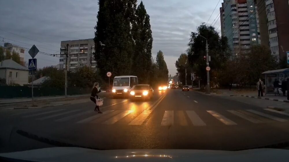 Russische voetganger wordt nèt niet overhoop gereden op het zebrapad