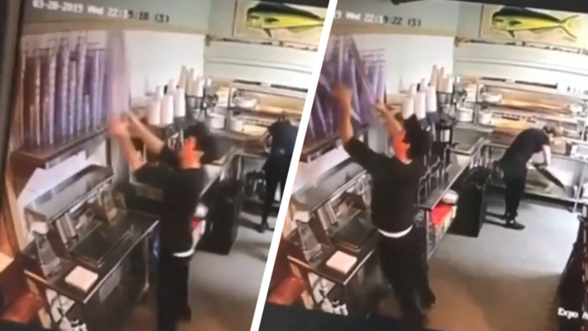 Afwashulp heeft de nodige moeite met het wegzetten van stapel bekers Fails