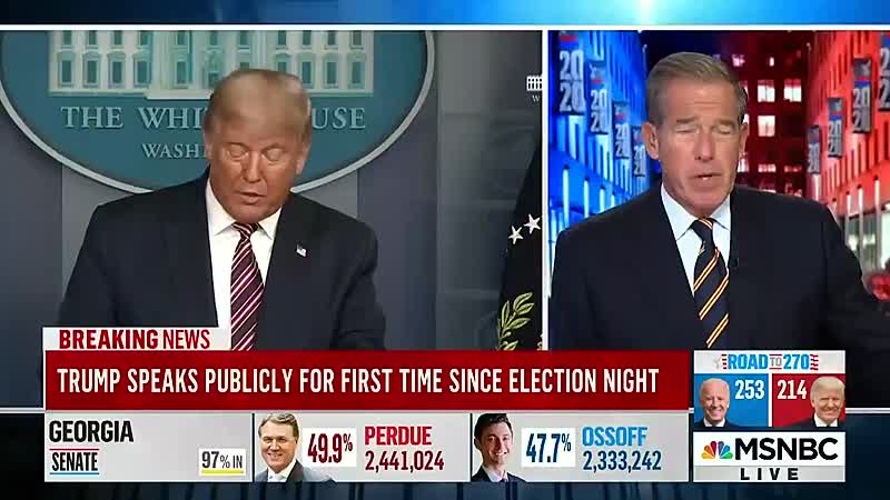 Zelf denkt hij natuurlijk van niet, want er ís namelijk geen blauwe golf. Als je namelijk alleen de legale stemmen telt dan heeft hij natuurlijk al lang gewonnen, <insert iets met WC-Eend here>. De speech die Trump afgelopen nacht gaf zat voor de zenders ABC, CBS and NBC dermate vol met (valse) beschuldigingen dat na verloop van tijd gewoon stopten met uitzenden.