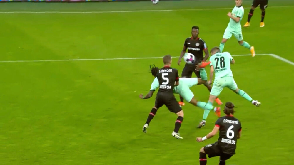 Valentino Lazaro van Borussia Mönchengladbach laat zien hoe het moet: de scorpionkick