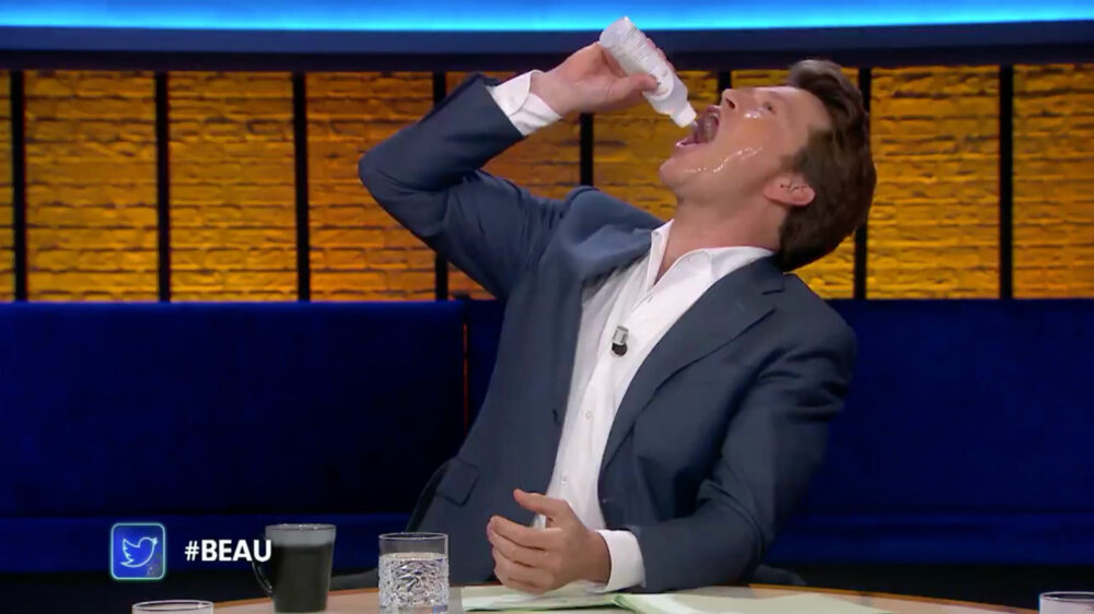 Gewoon even het goede voorbeeld geven voor de rest van Nederland, dat kun je wel aan Beau van Erven Dorens overlaten. Hij desinfecteert keurig zijn handen, zijn haar, zijn gezicht en gooit ook nog even een lading desinfectiegel in zijn keel 👍