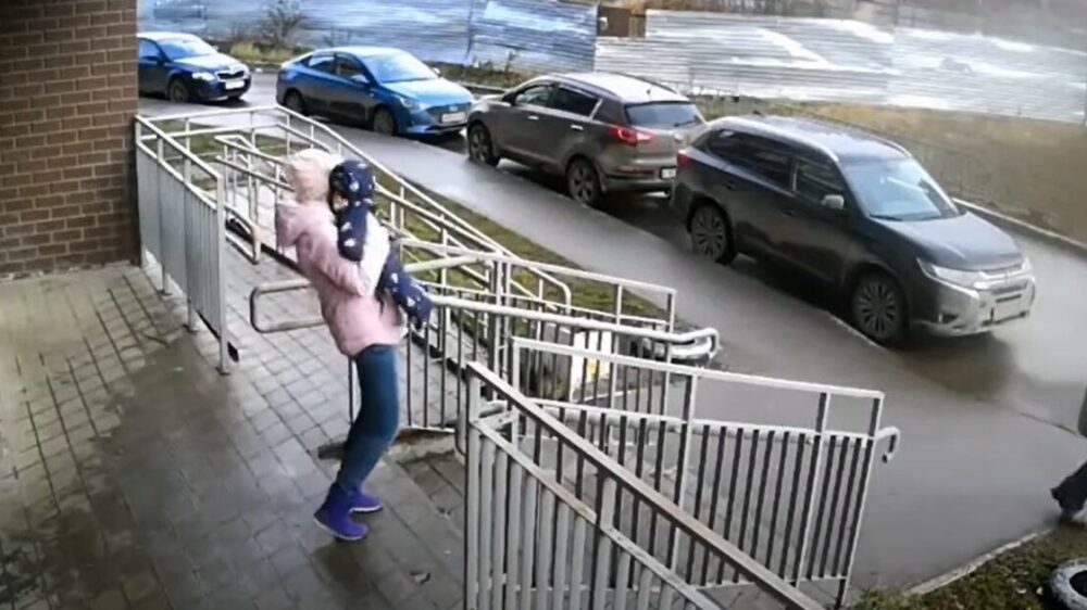 Moeder met kind nét niet geraakt door vliegende jerrycan met water