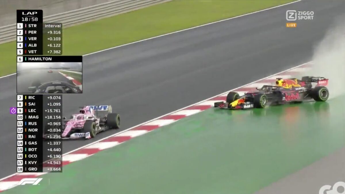 Video: Verstappen maakt een 720 rondje tijdens ultieme inhaalpoging op Perez
