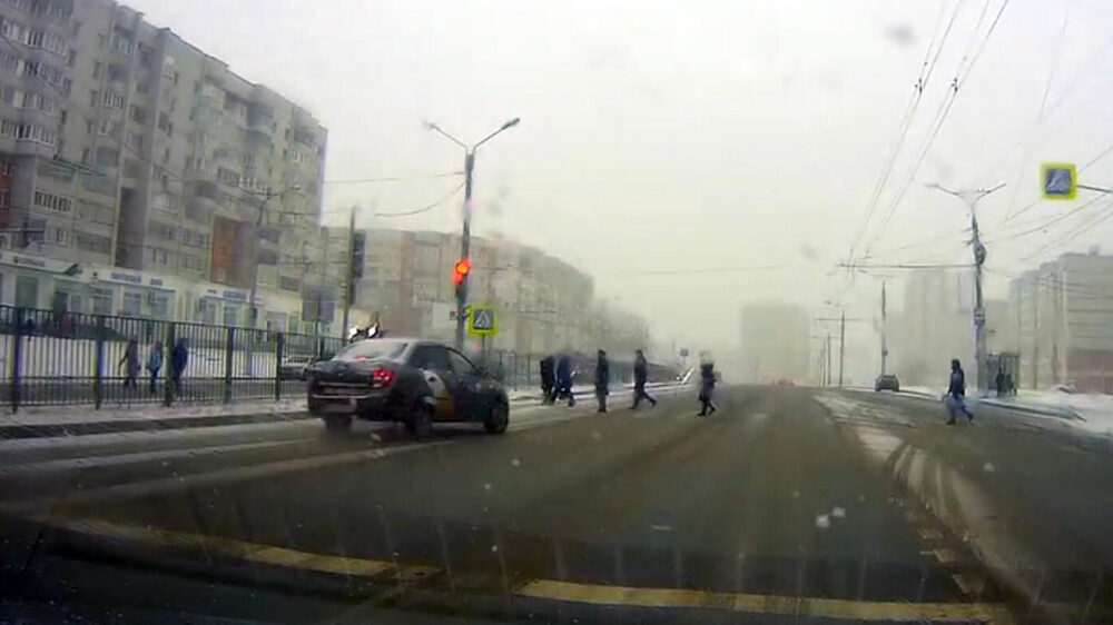 De close call du jour komt uit het Russisch plaatsje Tsjeboksary waar een idioot met hoge snelheid door rood jankt en op een haar na meerdere voetgangers mist. Blyat, dat was close.