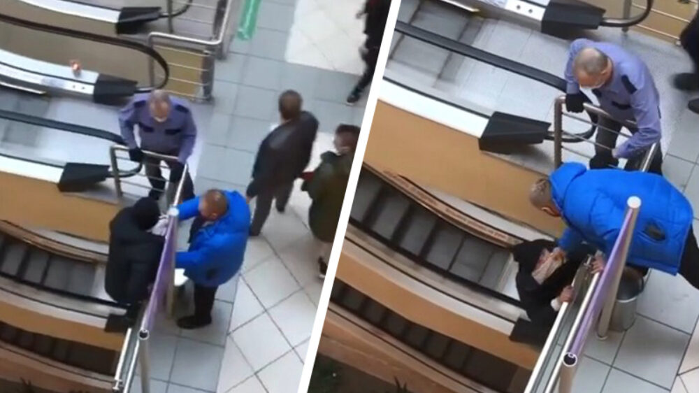 Russische winkeldief gooit zichzelf naar beneden om niet gepakt te worden
