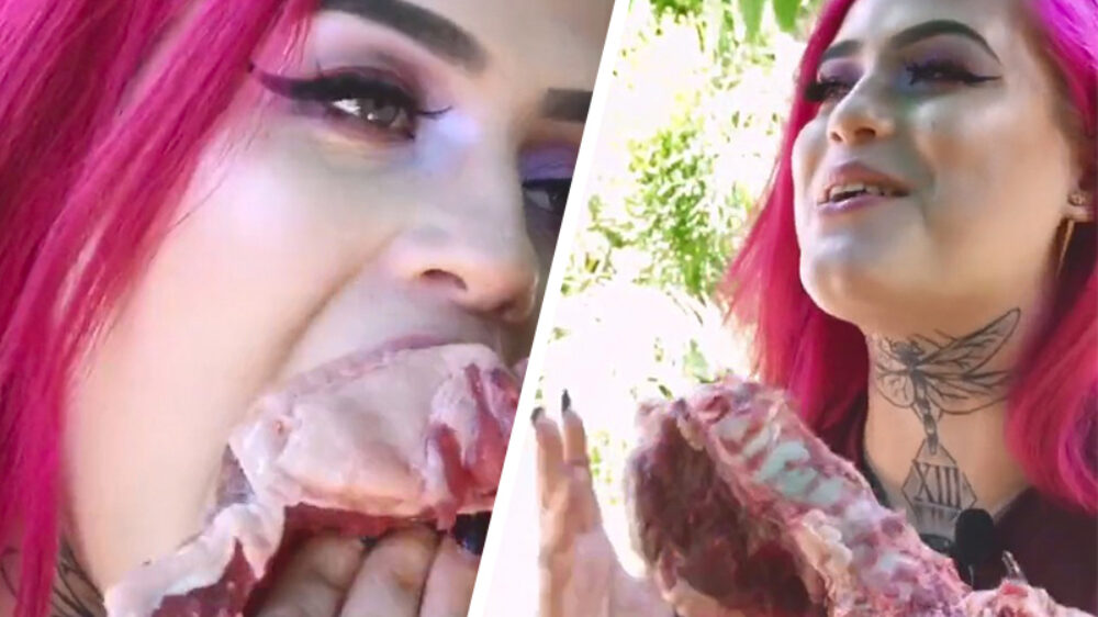 Je kunt je malse #steak rare, medium of verkrachten door hem well-done te bakken, maar bij deze vleesliefhebster komt er überhaupt geen pan aan te pas.