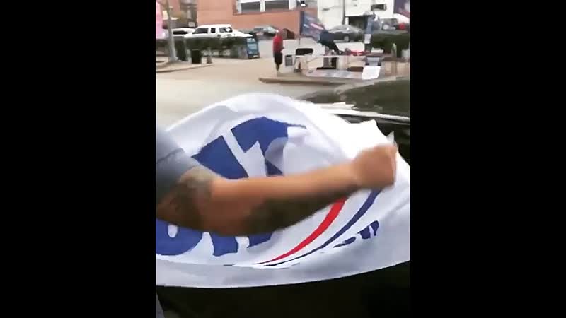 Wat lijkt het ons vervelend om zo getriggerd door het leven te moeten gaan... Vermoeiend ook. Dat als je een Trumpvlag ziet dat je vindt dat je die moet jatten en de eigenaar moet bespugen. Sneu, maar gelukkig grijpt moedertje #Karma snel in.