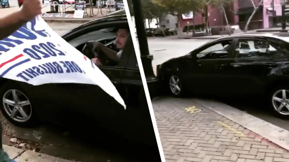 Keiharde karma voor spugende Trumphater die vlag probeert te jatten