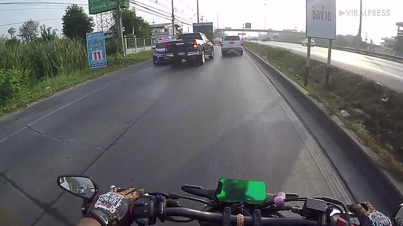 Motorrijder met pech crasht knetterhard in achterkant van pickup Fails