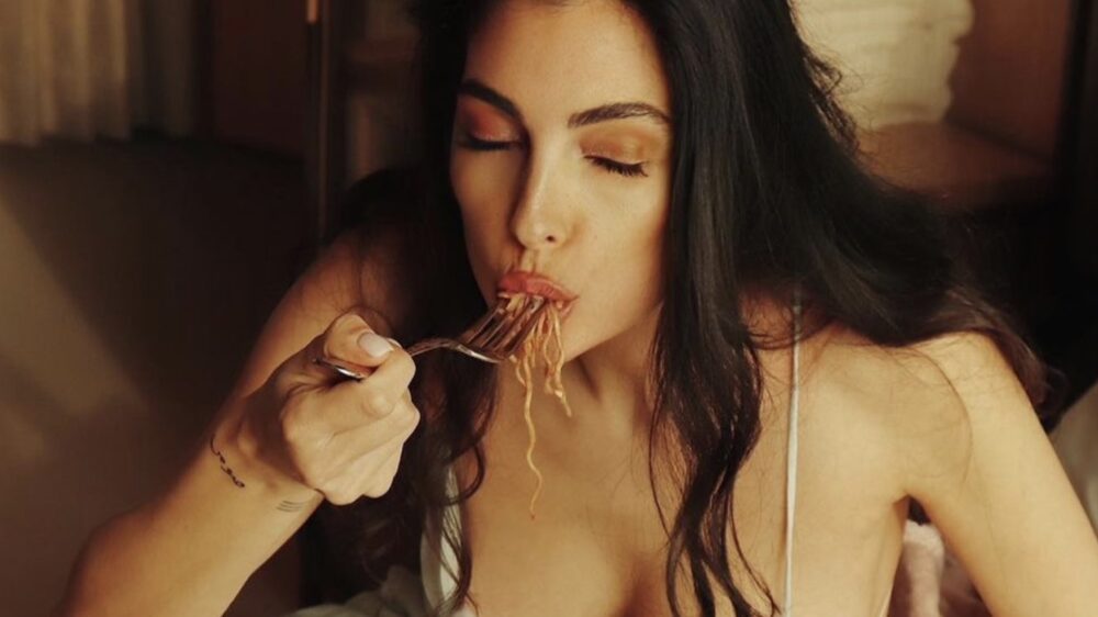 Even genieten van een bord eten is lastig als je een luchtig jurkje aan hebt. Kiekeboe!