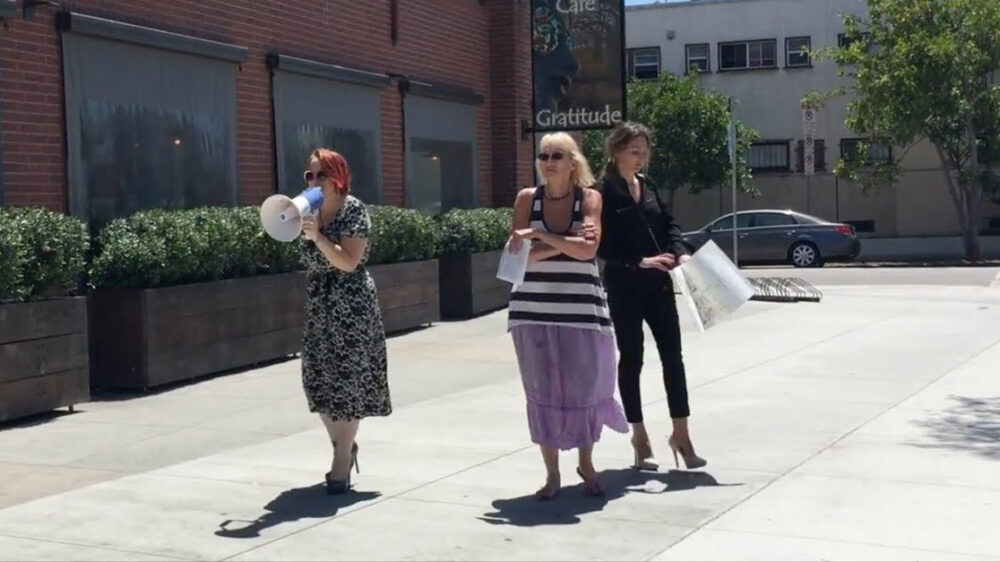 Chagrijnige vrouwelijke dierenrechtenactivisten kunnen niet tegen een grapje