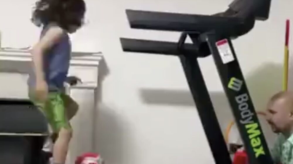 Papa krijgt spijt van een potje voetbal op de loopband Fails