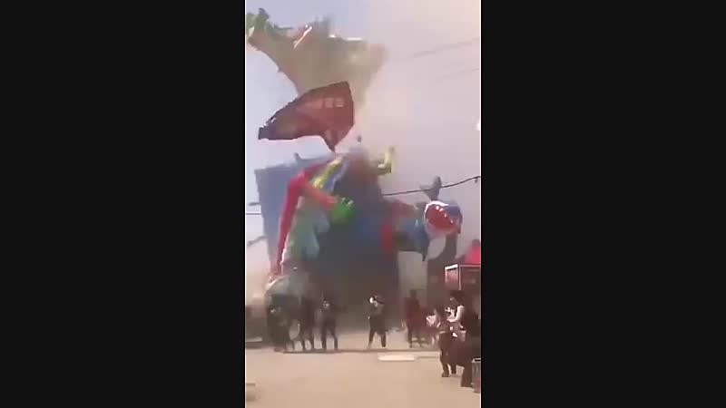 Verschrikkelijke beelden uit Henan (China), alwaar een stofhoos vat kreeg op een springkussen dat op dat moment gebruikt werd. Twee kinderen hebben het niet overleefd en een derde is ernstig gewond geraakt. Minstens 17 mensen raakten licht gewond.