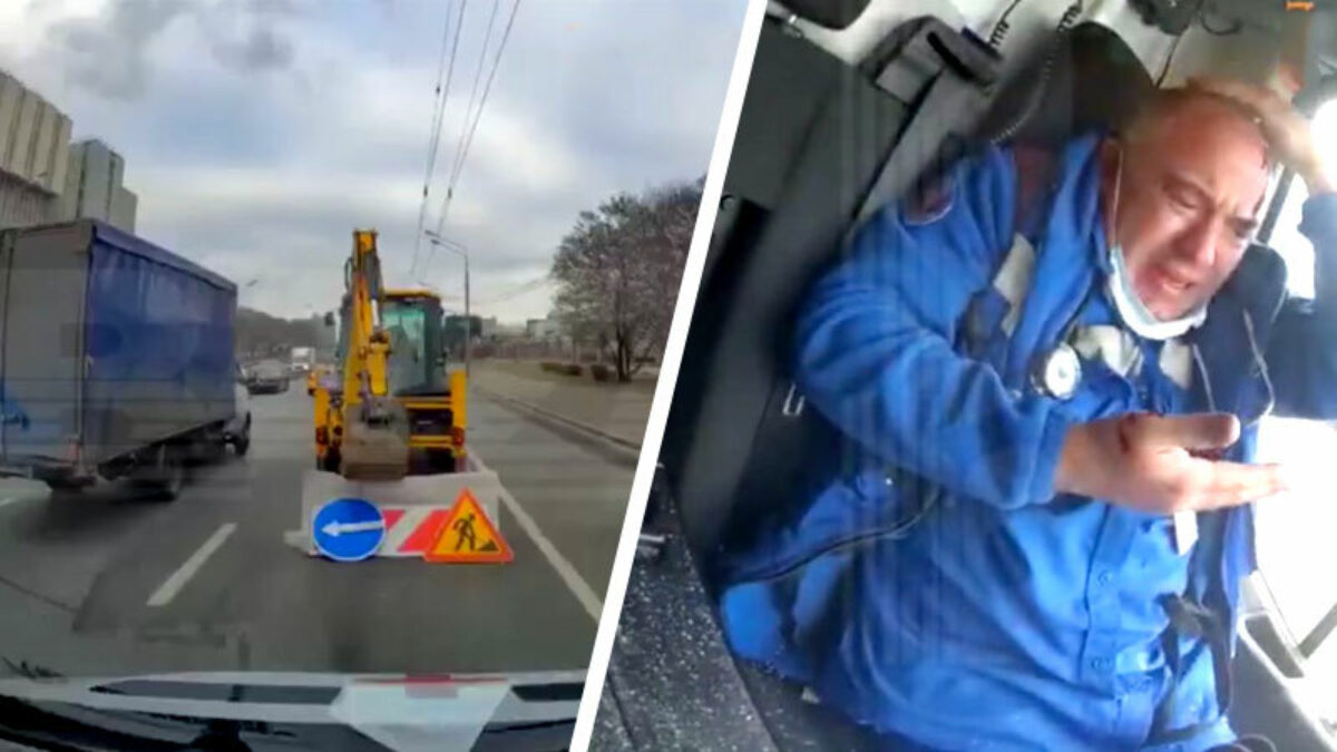 Hoewel je als ambulancechauffeur altijd scherp moet zijn op de weg, had deze Rus blijkbaar even een minder goed momentje want hij klapte VOL op een stilstaande graafmachine. Op zich niet heel gek, want zoiets verwacht je niet echt natuurlijk...