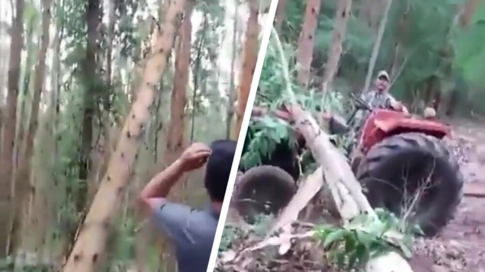 Toch knap: je boom precies laten neerkomen waar het niet moet