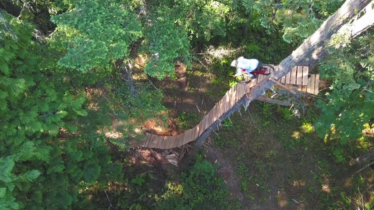 Jordie Lunn bouwt bijna-verticale ramp en joekelt er op zijn mtb vanaf