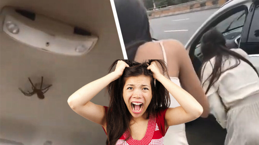 Dames worden hysterisch als ze een ongevraagde lifter in hun auto vinden