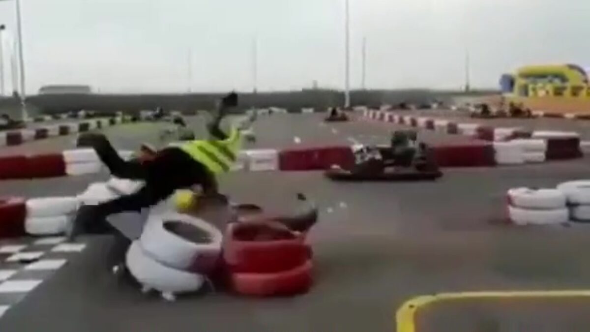 Marshall op de kartbaan krijgt een onverwachte optater van aanstormende kart Fails