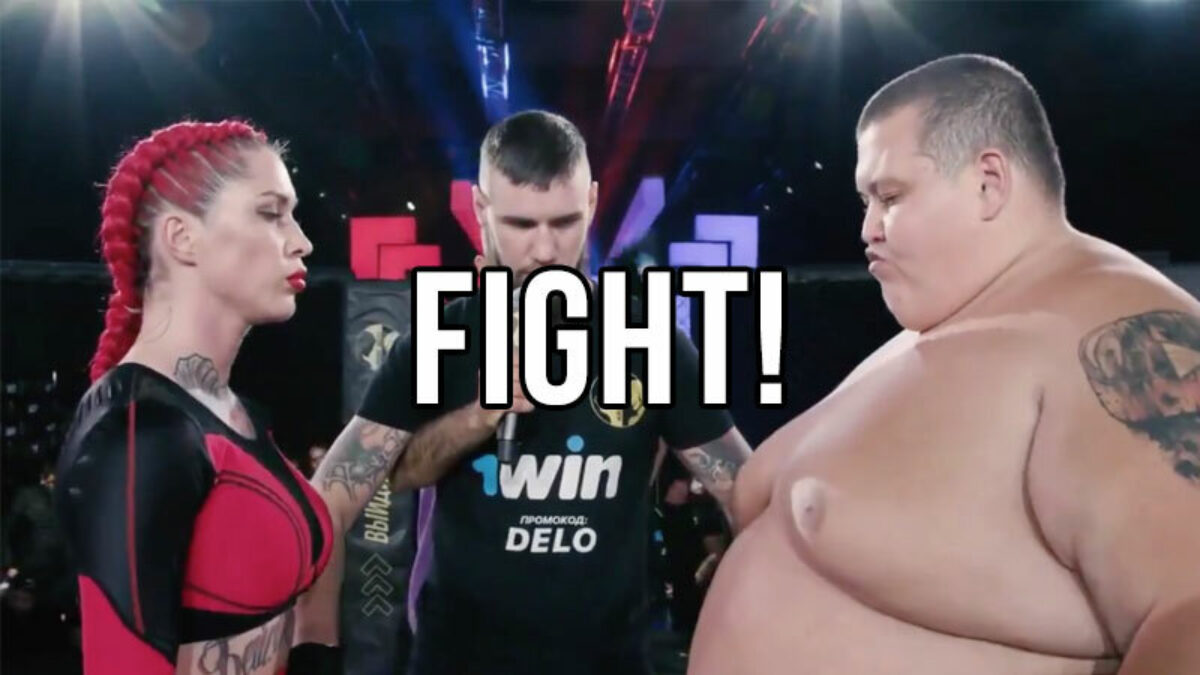 Geen grap: Russisch MMA-gevecht tussen Grigory Chistyakov (225 kg) en Darina Madzyuk (63 kg)