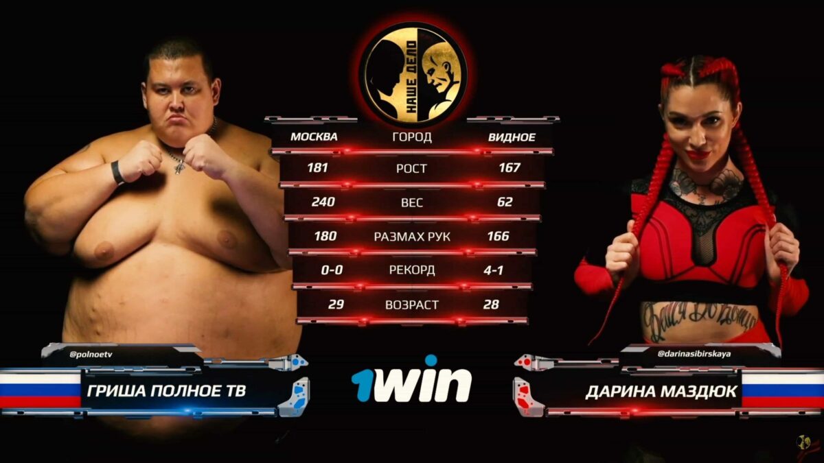Geen grap: Russisch MMA-gevecht tussen Grigory Chistyakov (225 kg) en Darina Madzyuk (63 kg)