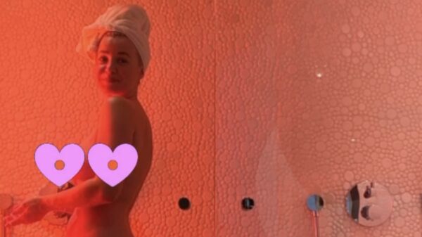 Je had het natuurlijk niet willen missen, maar hier zie je Victoria Koblenko die onder een zogenaamde 'sunshower' stapt.