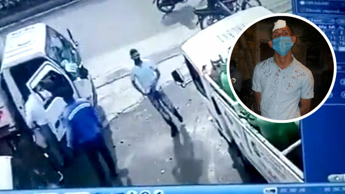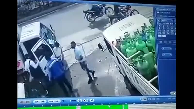 That happened yesterday in Cartagena. A thief tried to assault a truck transporting gas cylinders. When one of the workers realized what was happening to his partners, decided to throw one of the full cylinders to the thief head.