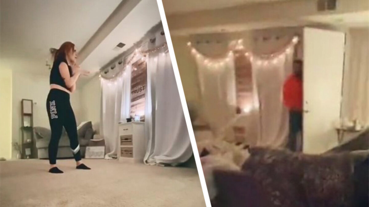 Hannah Viverette was een 'leuk' filmpje voor TikTok aan het maken toen ze iemand op haar balkon hoorde klimmen. Plotseling opent haar grootste fan de buitendeur en wandelt doodleuk naar binnen.