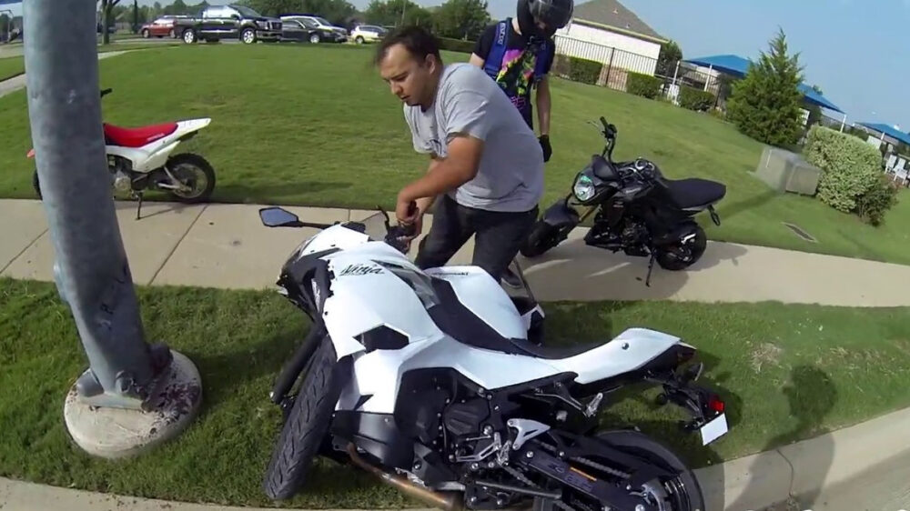 Uitslover klapt met zijn gloednieuwe motor vol tegen een elektriciteitspaal