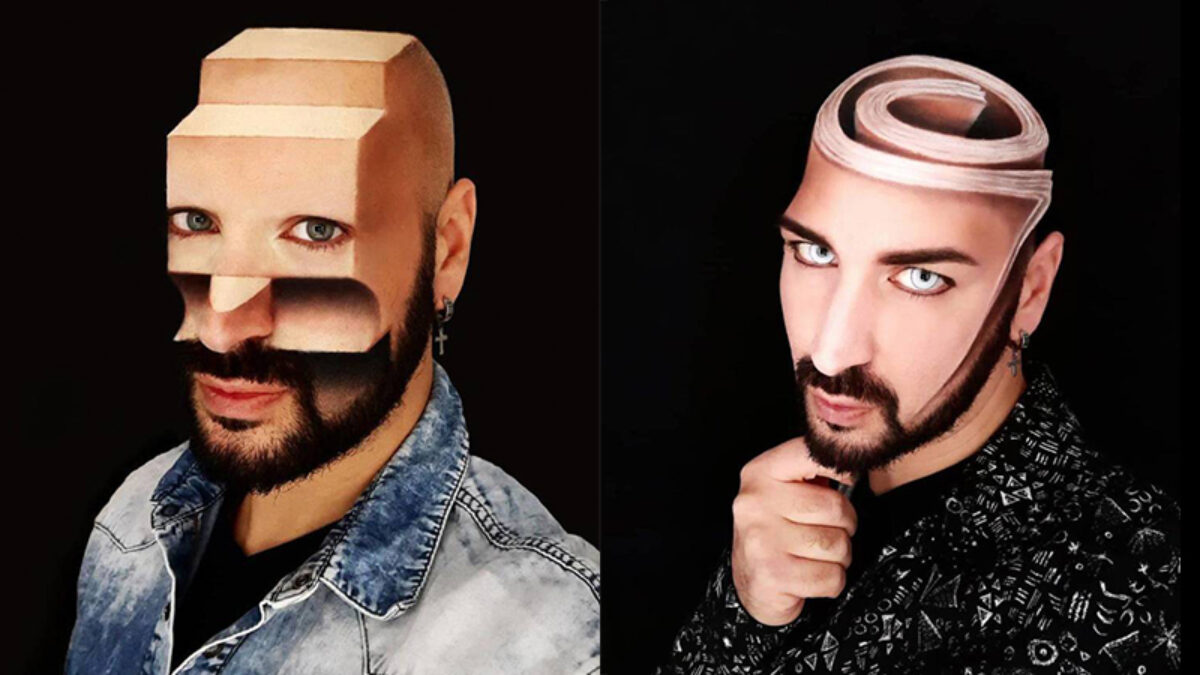 Luca Luce gebruikt make-up om vette 3d-illusies op z'n porem te maken