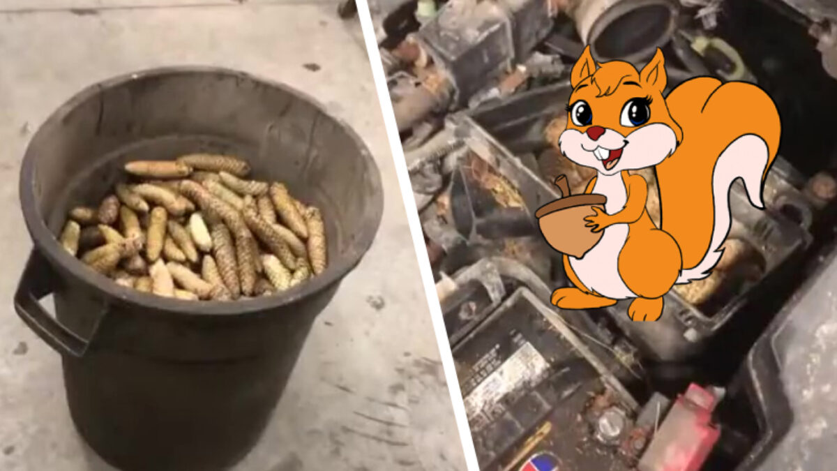 Natuurlijk moet je met je auto naar de garage als je geen vermogen meer hebt, maar wellicht is het verstandig om het gebakje in het vervolg binnen te zetten. Of in elk geval op een plek waar er geen #eekhoorn bij kan.
