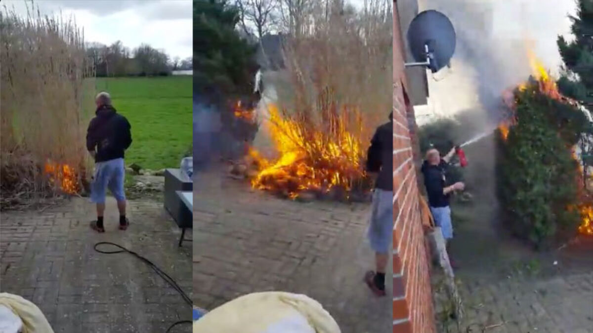 De tuin zomerklaar maken gebeurt in Duitsland met een gecontroleerd vuurtje Fails