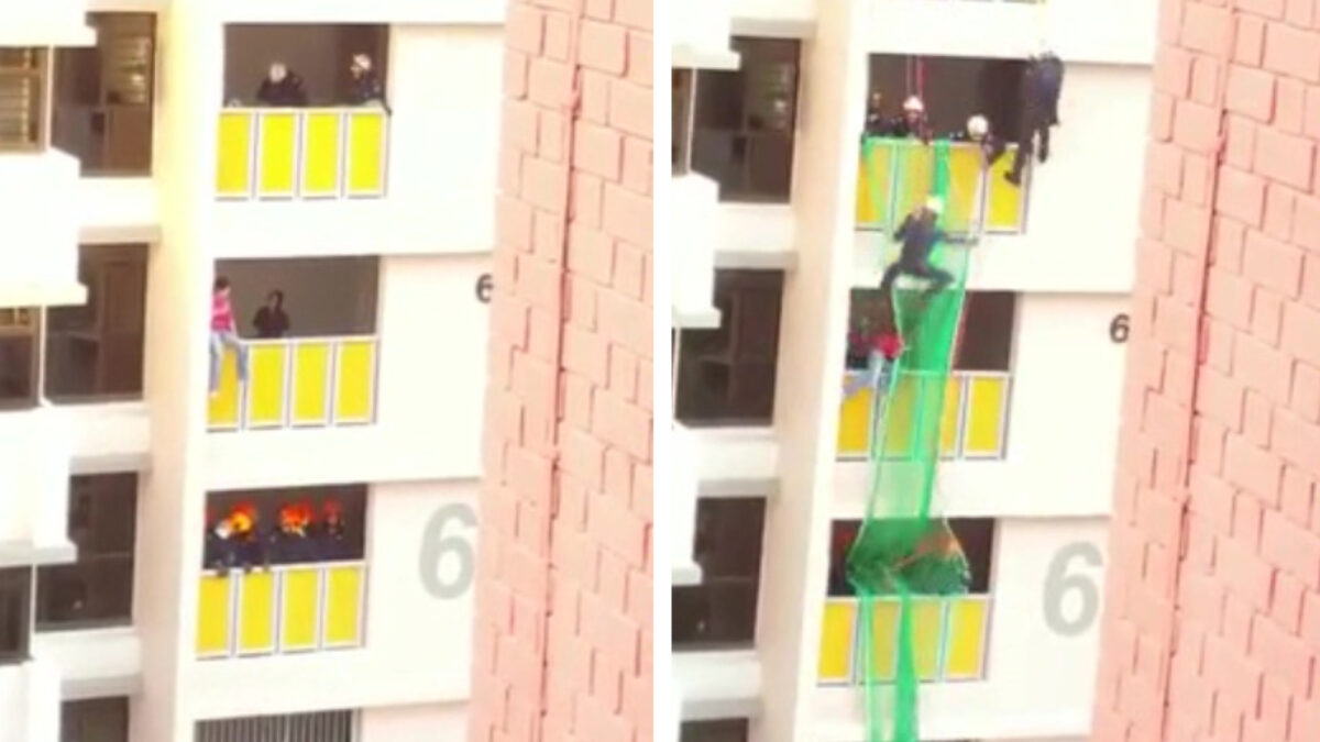 Deze man zag zijn leven in Singapore dusdanig niet meer zitten dat hij dreigde zich van de zesde verdieping naar beneden te gooien. Gelukkig waren daar de helden van de Singapore Civil Defence Force die de man met een vrijwel perfecte actie weer naar binnen 'hielpen'.