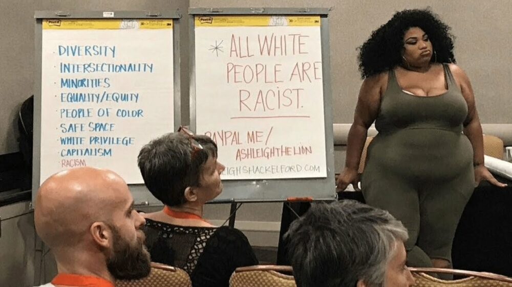 Even kennismaken met Ashleigh Shackelford, naar eigen zeggen een "Black fat cultural producer, multidisciplinary artist, nonbinary shapeshifter, hood feminist, and data futurist". Goeie jobtitel. De laatste paar dagen komt een oude video van haar erg vaak bovendrijven. Hierin geeft ze een zogenaamde 'racismetraining' aan een aantal roomblanke toehoorders en deze training bevat een nogal eeeuh.... bijzondere boodschap. Tikje racistisch ook wel. Tikje.