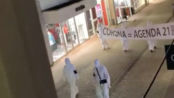 Enge mensen in witte pakken houden stil protest in Winterswijk