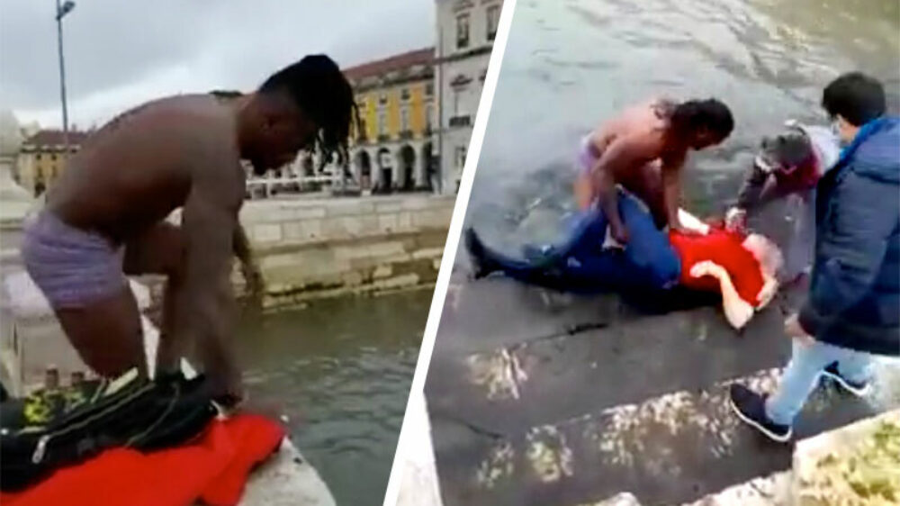 De 37-jarige José Brito liep met zijn zoon langs de rivier de Taag toen hij er een lichaam van een man in zag drijven. Niet snel je telefoon pakken om te filmen, maar gewoon de plomp in springen om iemands leven te redden zoals het hoort. Wel met sokken aan natuurlijk, anders is het veel te koud.