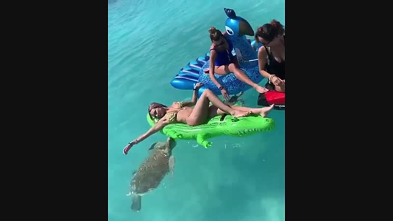 Agressieve zeeschildpad valt zonnebadende krokodil aan Fun