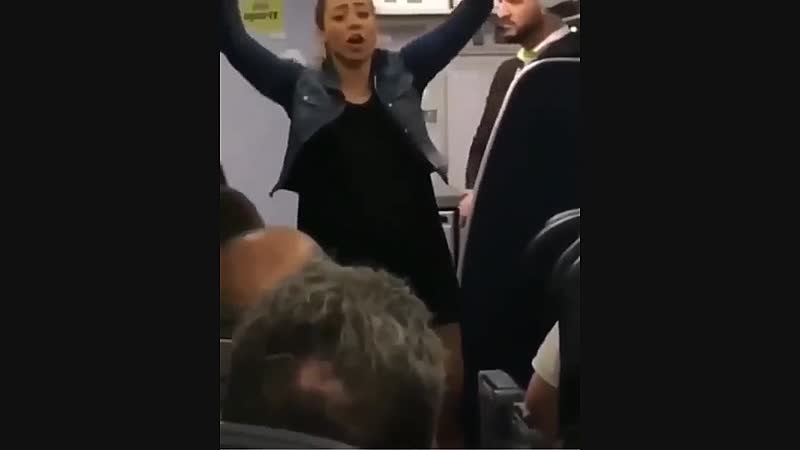Dronken chick voert een showtje op als ze uit het vliegtuig wordt gezet