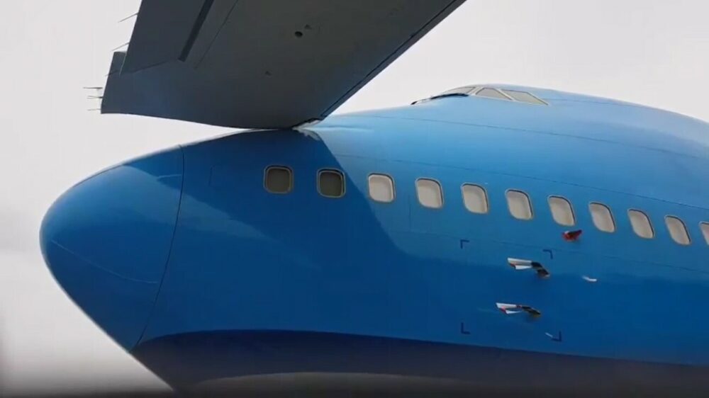 Piloot laat op de parkeerplaats van de buurtsuper een krasje achter