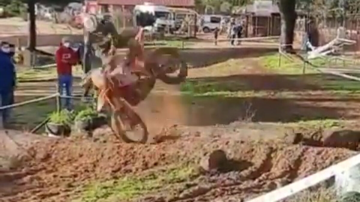 Motorcrosser wordt dankzij heuveltje een menselijke kanonskogel