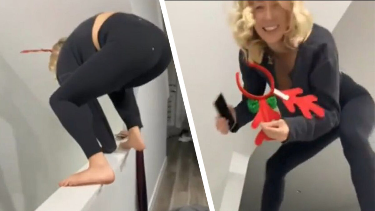 Dronken rendier staat wankel op d'r poten en lazert van de trap af Fails