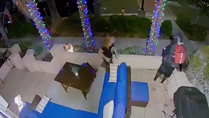 Ze kan nog net op tijd voorkomen dat haar barbecue wordt meegenomen. Gelukkig komt d'r vent ook onmiddellijk in actie.