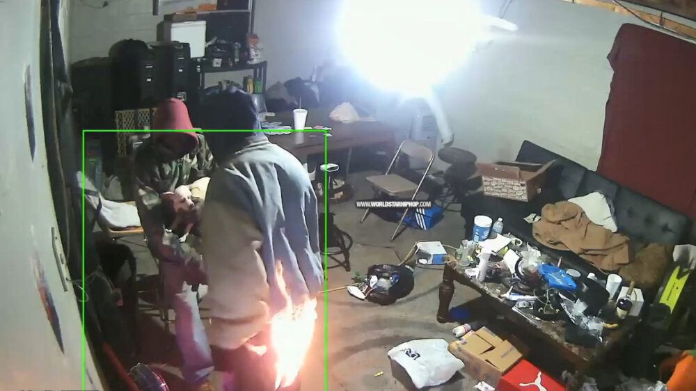 Broek vliegt in de fik als rommelkont zichzelf opwarmt bij de kachel