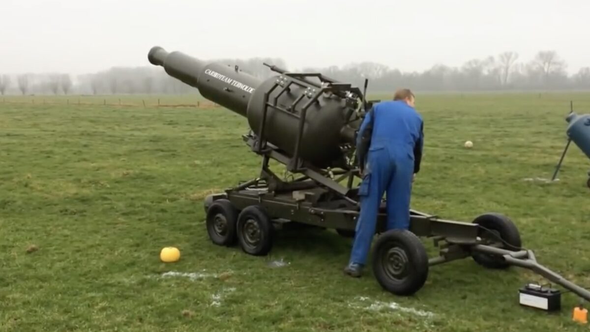 Een ouderwets stukje rammen met carbid in een zelfgebouwd kanon
