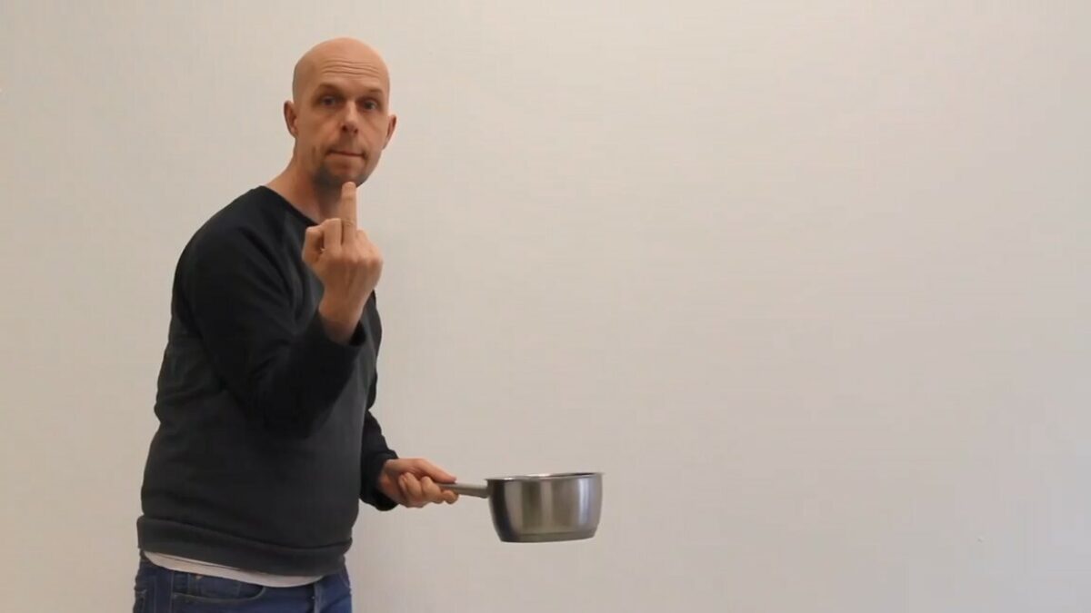 Beeldend kunstenaar Jan Erichsen staat bekend om zijn korte vernietigingsvideo's waarin vaak ballonnen het moeten ontgelden. Vandaag niet alleen ballonnen, maar een dikke vinger naar het rampjaar 2020.