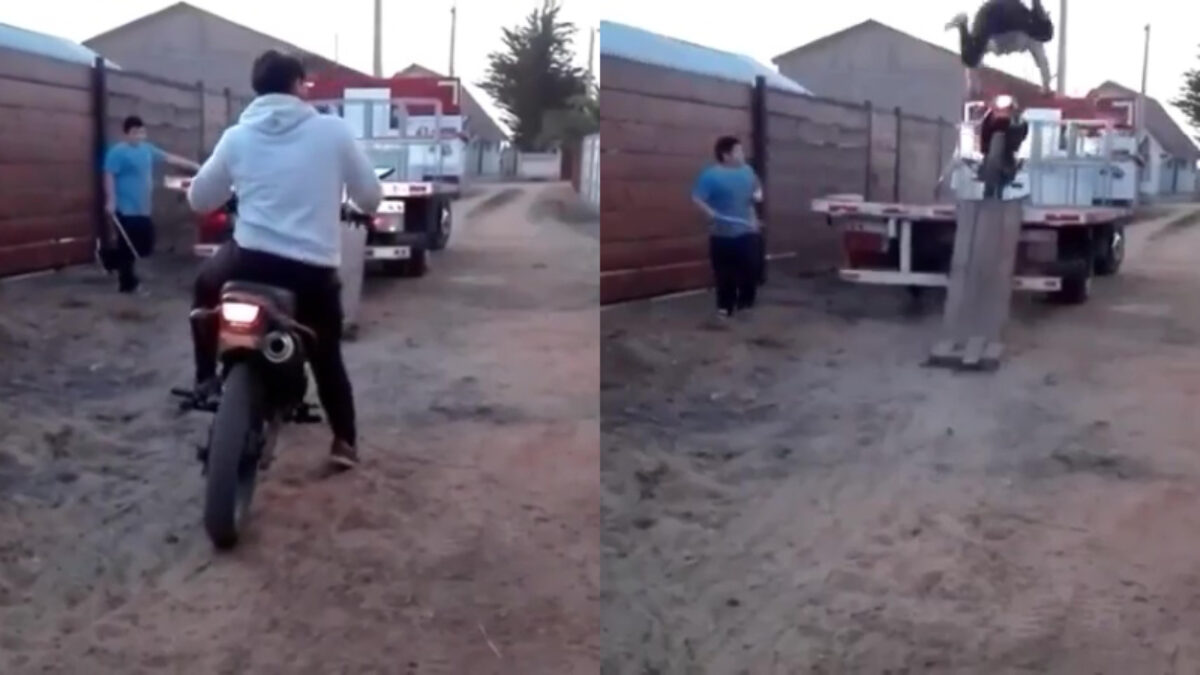 Enthousiaste faalhaas probeert zijn motor op een aanhanger te parkeren Fails