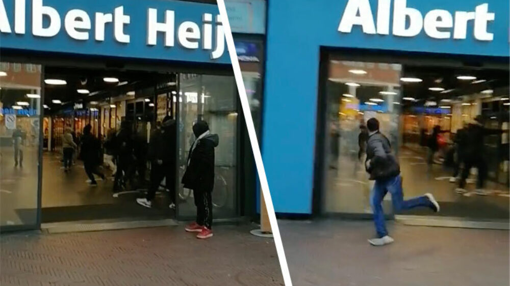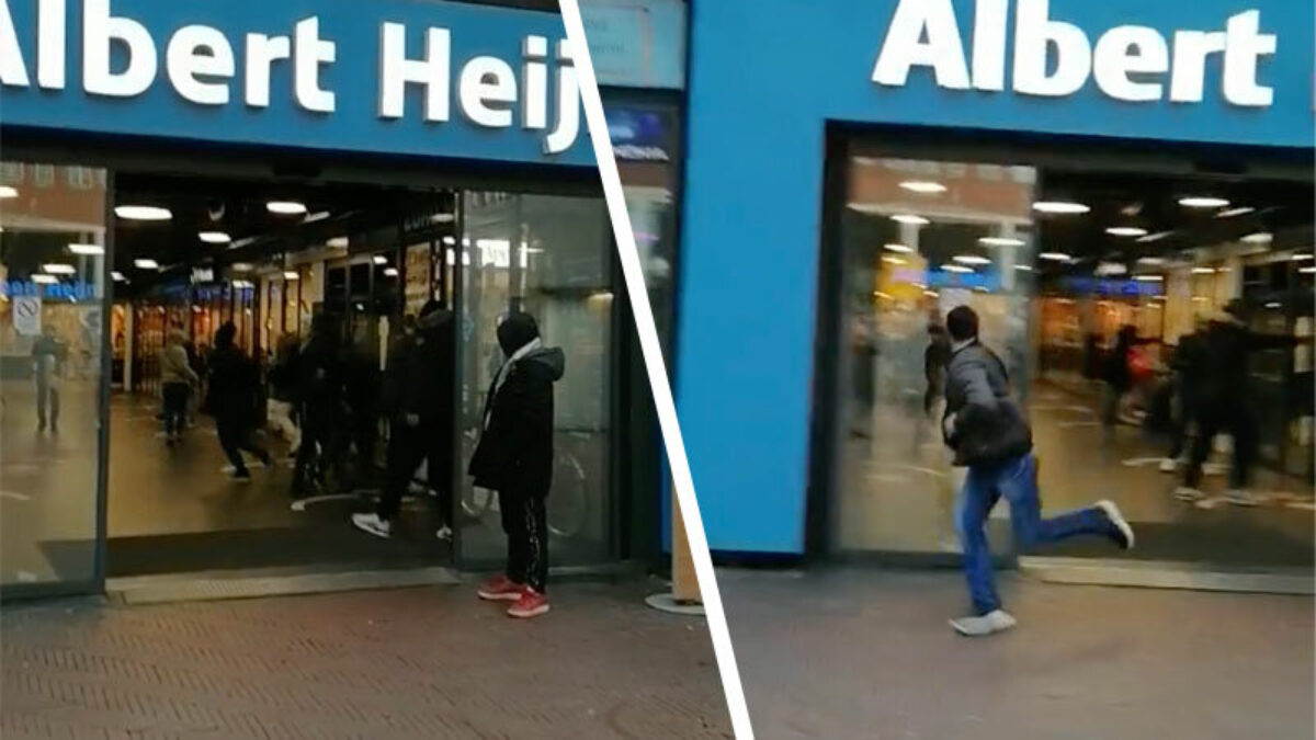 Wil je net een zelfscanner uit de muur trekken om alvast de piepers voor het avondeten in te slaan, komt er één of andere idioot de Appie in die met een gaspipa om zich heen begint te schieten. Of we met een nieuwe drillrap-fittie te maken hebben of dat het 'gewoon' een gevalletje even laten zien wie er de baas is, weten we niet maar het ziet er best bizar uit.