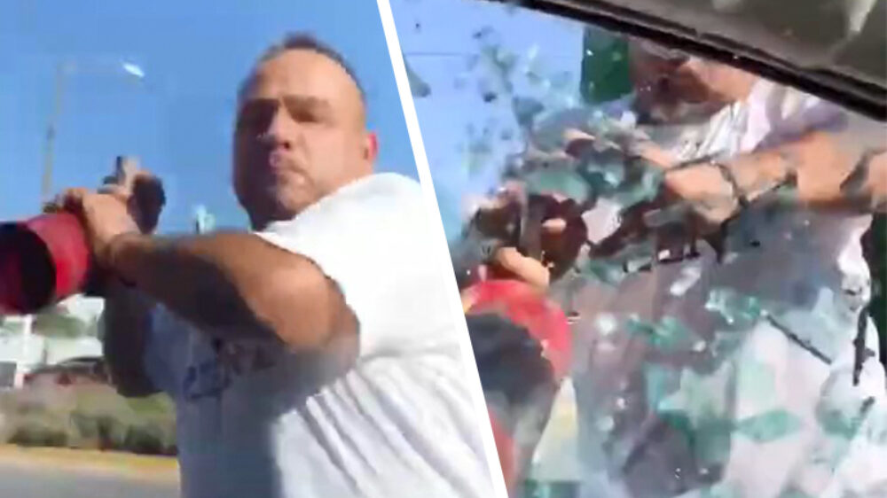 Tranquilo. Mexicaanse buschauffeur ramt autoruit in met brandblusser