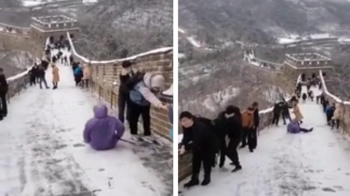 Chinese muur niet alleen lang, maar soms ook erg glad Fails