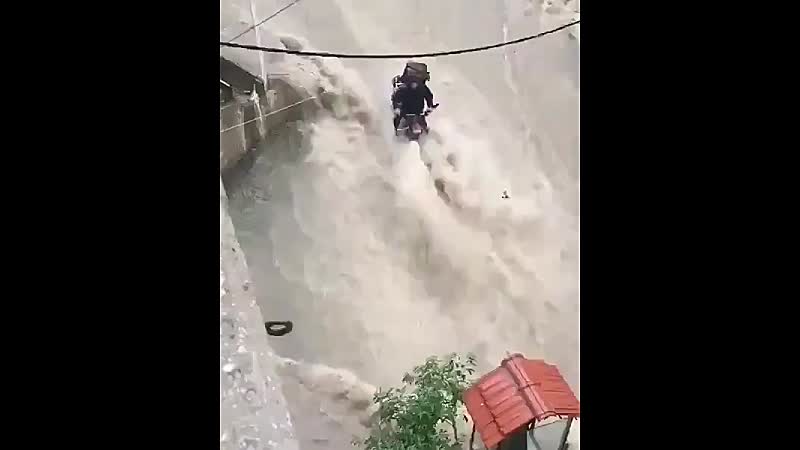 We weten niet zeker of deze pechvogel uit Libanon een bezorger is, maar wat hij bij zich heeft kan lichte waterschade hebben. Kleine shout out naar de omstanders die onmiddellijk te hulp schieten.
